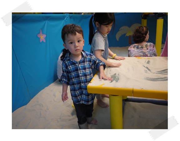 因為他年紀比較大,所以很適合去沙坑玩耍,玩沙子就可以玩一整個下午