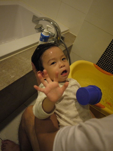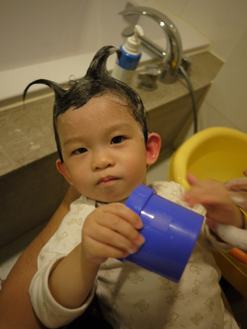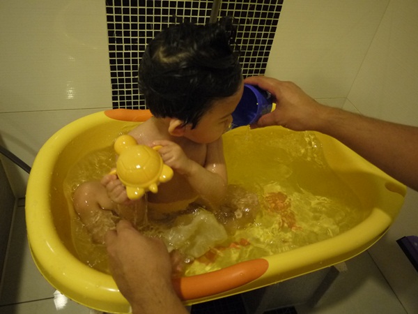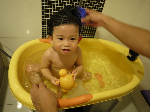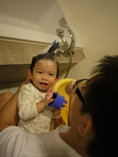 不然洗到一半就三不五時給我坐起來該該叫!小孩真難搞!真的是再考驗我的毅力跟耐心!