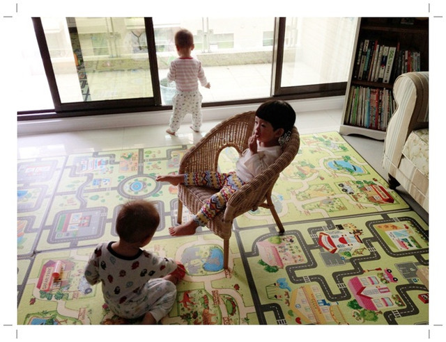照片顯示為大姊頭,雙胞胎弟弟妹妹(大嫂的寶包)在她身邊遊走~