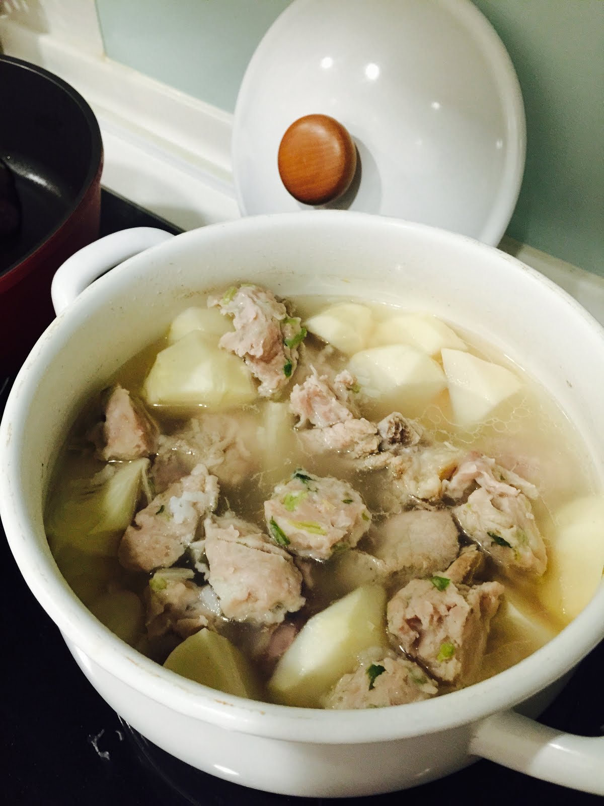 一樣水滾之後丟排骨、竹筍、滾個20分鐘後排骨跟竹筍味道融合後,加點鹽巴,最後因為丸子很容易就熟了,起鍋前五分鐘丟入即可,又是一個簡單二十分鐘內的湯品料理!!!!