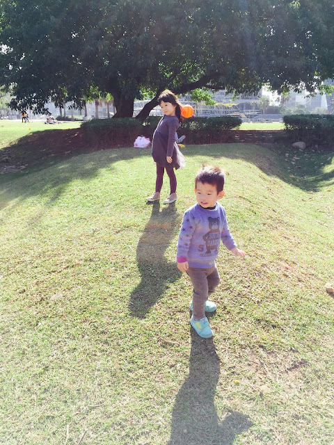 小時候最喜歡在路邊扮家家酒,現在路邊好像不能隨便炒菜了,只好帶雞寶來公園炒菜