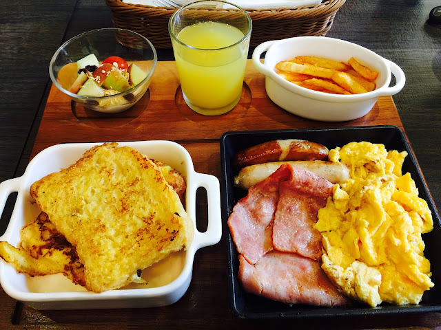 我點的是美式炒蛋、法國吐司、炸薯條組合,跟雞寶一起分享餐。
