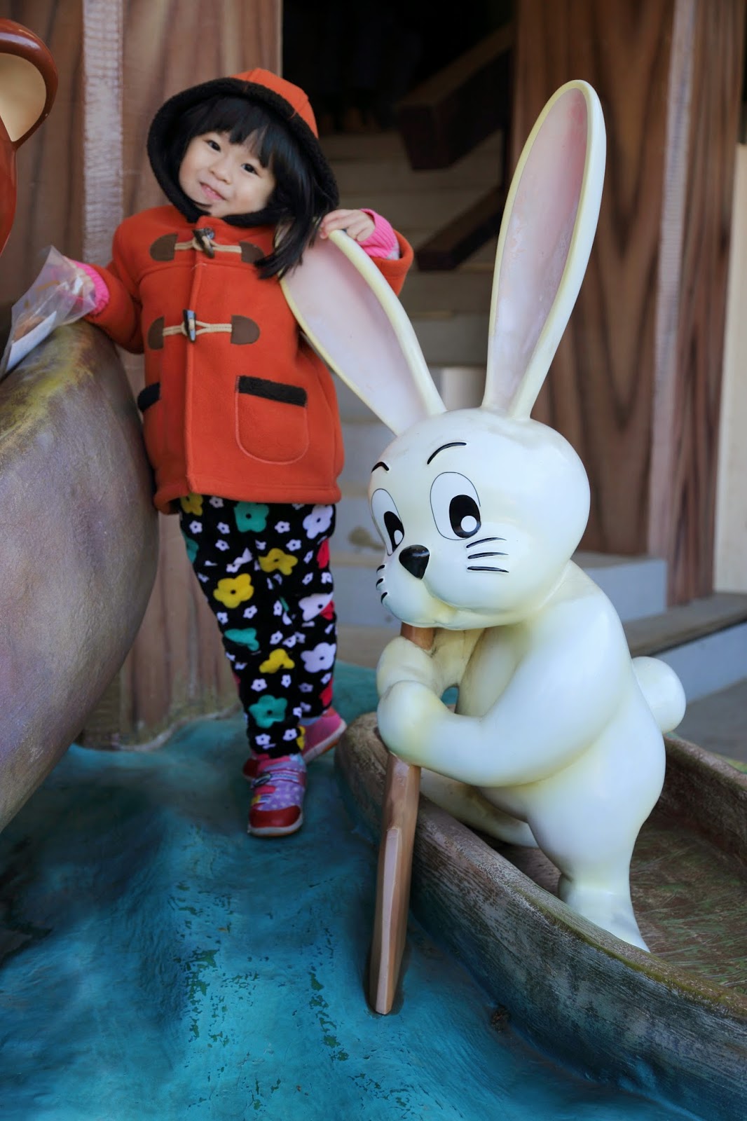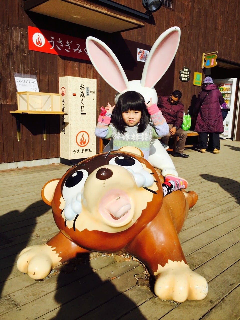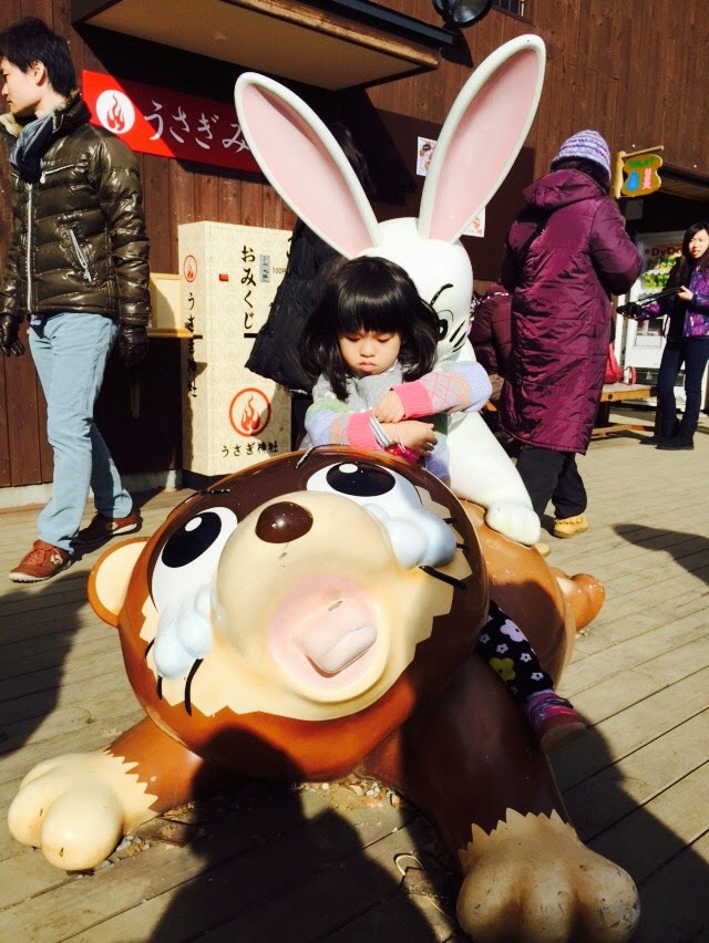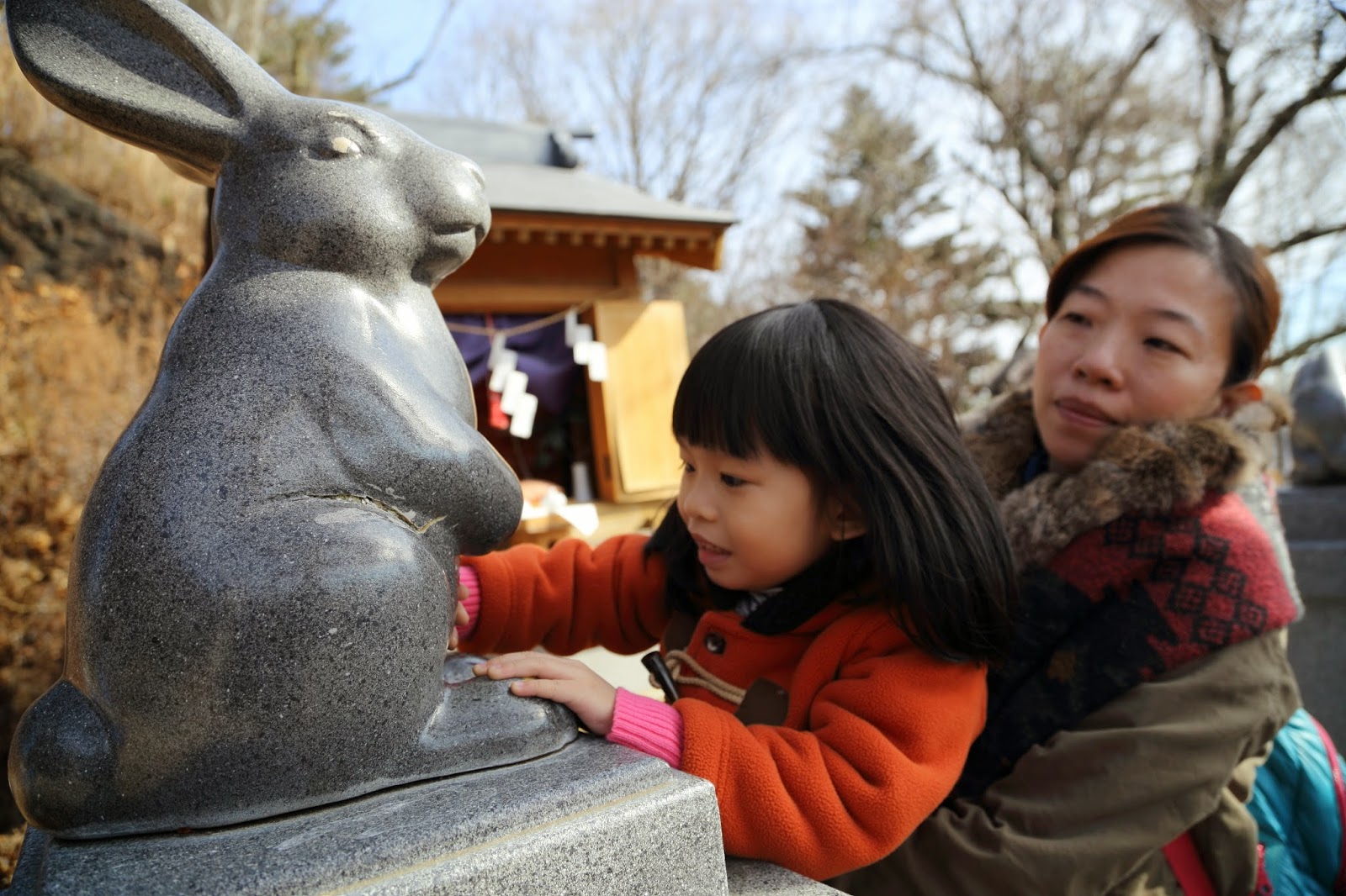 天上山這邊的吉祥物是小兔兔,剛好雞寶也屬兔來摸一下