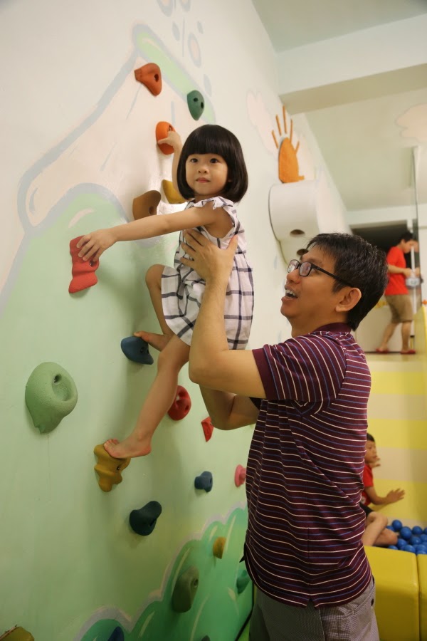 第三層樓還有這面牆可以讓小童攀爬,一開始雞寶好驚驚