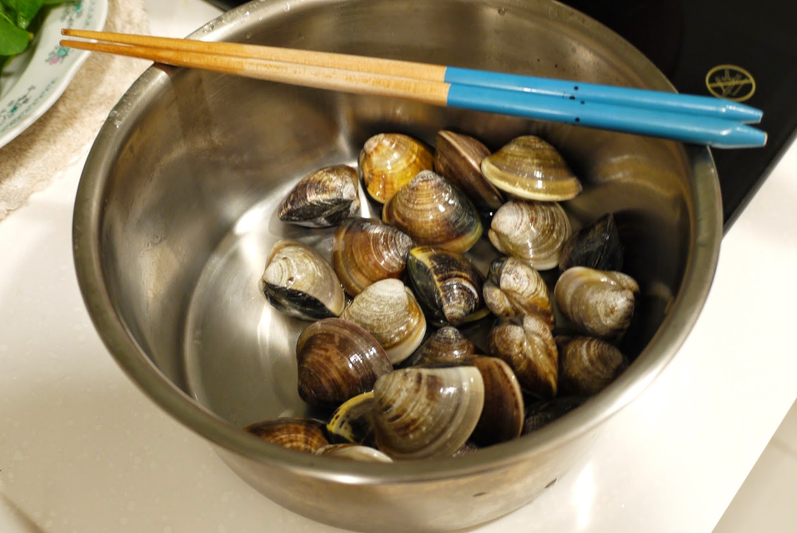 蛤蜊吐好沙,讓牠靜靜的在旁邊等著