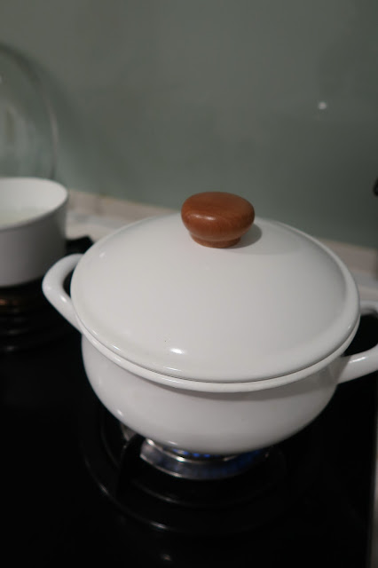 再來就把剛剛燙好的雞肉放入鍋子裡(鍋子不要我再介紹了就是野田法瑯鍋)超好用。