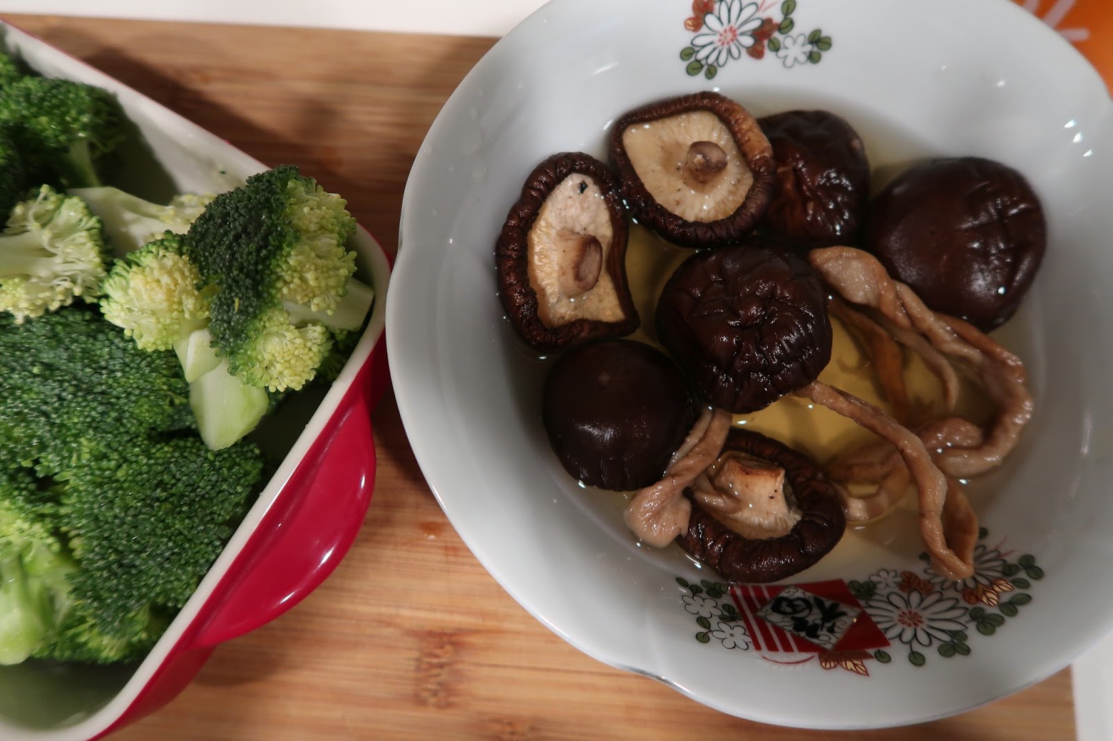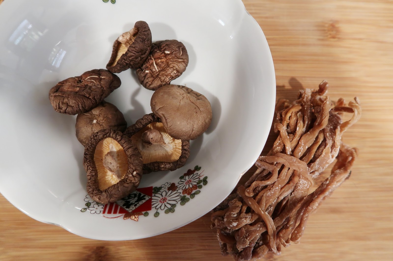 因為我很晚才想起來要煮香菇雞湯,所以我的香菇跟菜ㄅㄡˋ直接用熱開水泡開。