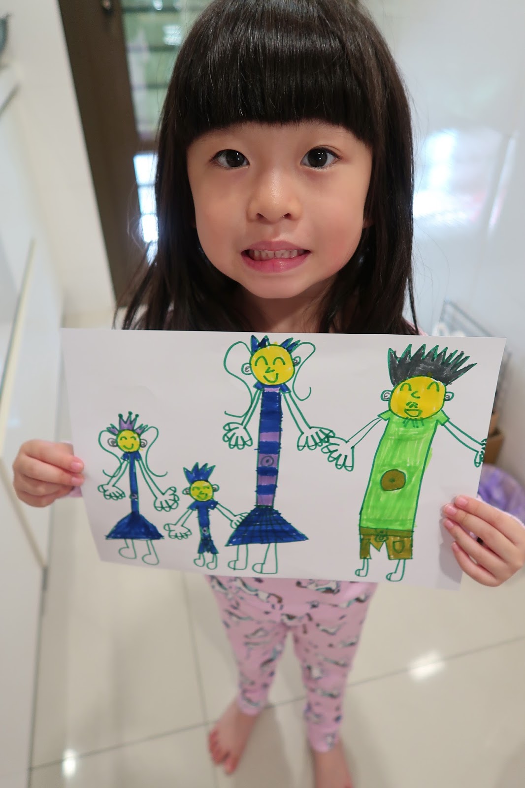 然後煮到一半雞寶因為雞丁不在很無聊,來秀一下她最近的我們一家人畢卡畇畫作。
