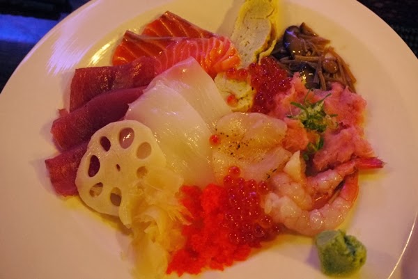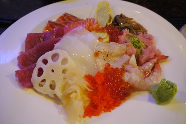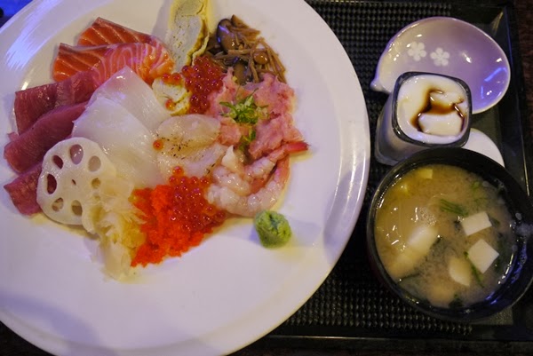 裡面有鮭魚兩片、透抽兩片然後生蝦、鮭魚卵、蝦卵等等