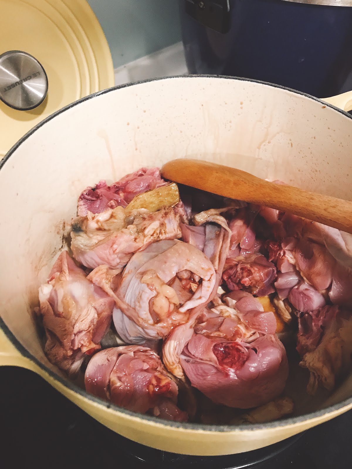 接著用水倒入鍋內後,淹沒整個雞肉後就能蓋上鍋子約30分後就大功告成。