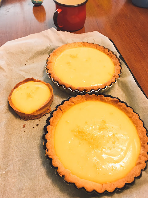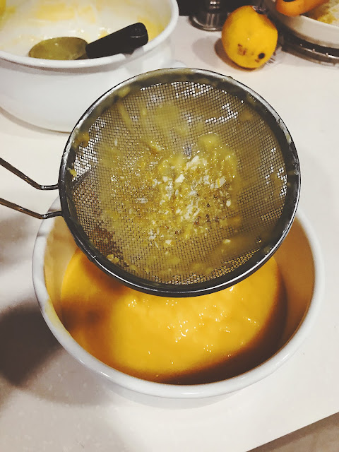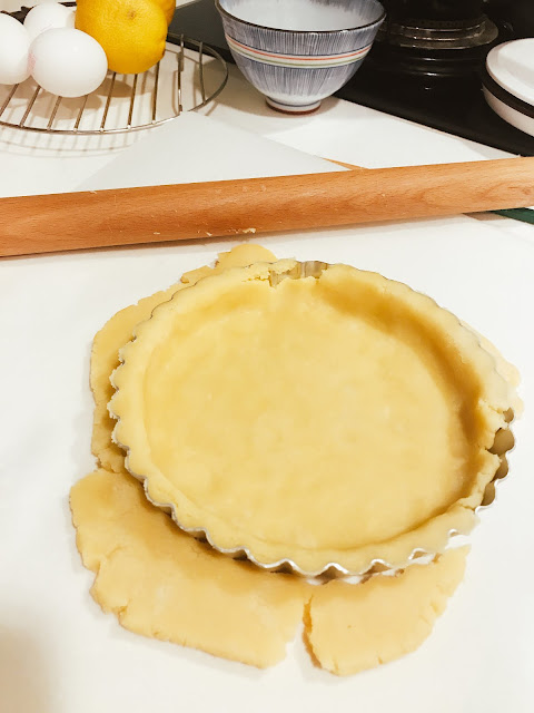 最後把過篩的檸檬將放到剛剛烤好的派皮上就大功告成囉!