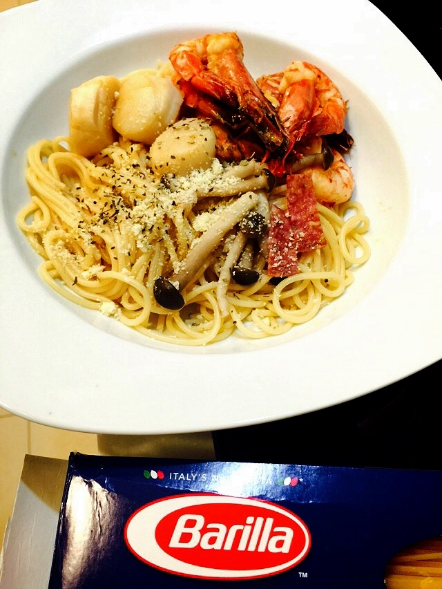 越南更是出口草蝦第一名的國家喔。低工業環境的越南養殖場所更純淨。準備食材:草蝦十尾、睿宇DD最愛的菇菇、【Barilla百味來】義大利麵