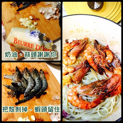 奶油跟蒜頭很重要,可以襯托出海鮮的美味,如果大人口味其實是可以加入白酒,但我不想雞寶丁晚上都不睡所以就沒加!這款草蝦隨便炒一炒,濃郁的蝦膏隨之而出,乓貢貢!